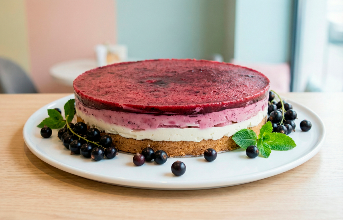 Лёгкий, освежающий и сбалансированный десерт для тех, кто выбирает ПП без компромиссов во вкусе. Нежный шоколадный бисквит на цельнозерновой муке, воздушный творожно-ягодный мусс и яркая кислинка чёрной смородины создают идеальный баланс сладкого и свежего. Без сахара - с натуральной сладостью, лёгкой текстурой и ощущением «чистого» десерта, который приятно вписывается в осознанный рацион.