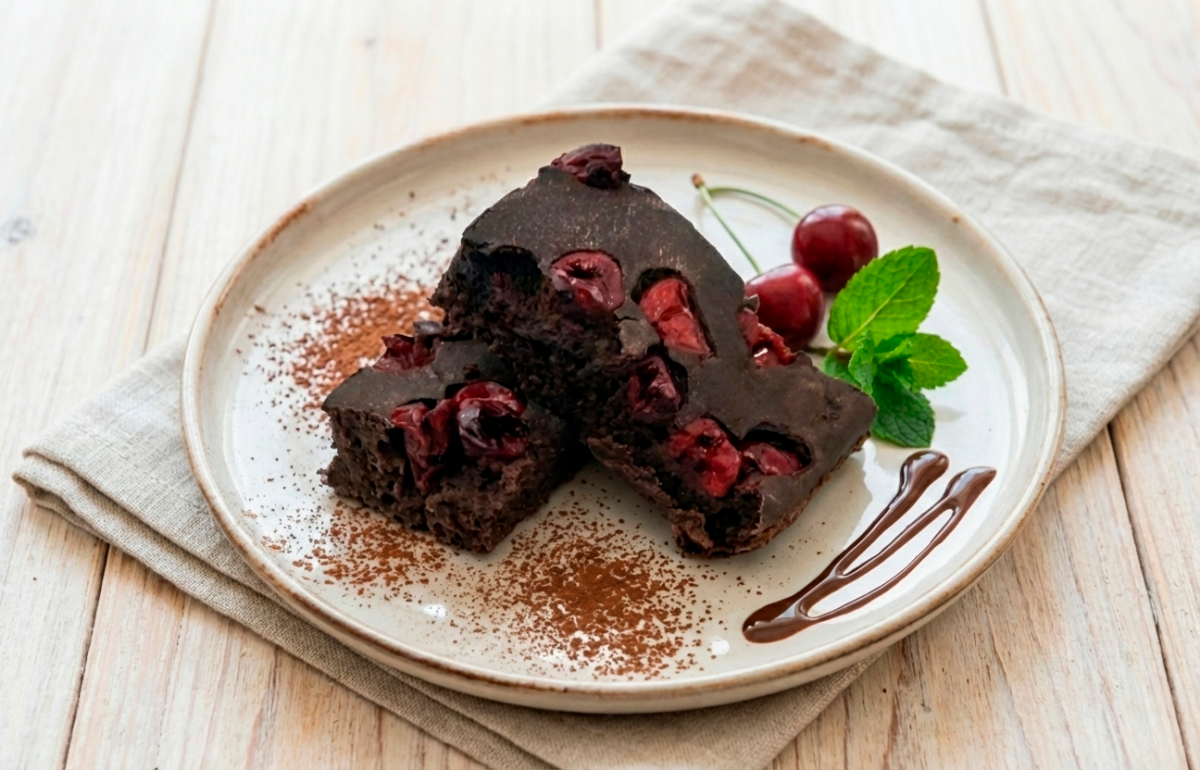 Насыщенный шоколадный вкус с приятной ягодной кислинкой. Брауни на цельнозерновой муке и какао, с сочной вишней и натуральной сладостью без сахара. Мягкий, ароматный и сбалансированный ПП-десерт, который дарит удовольствие без чувства вины.